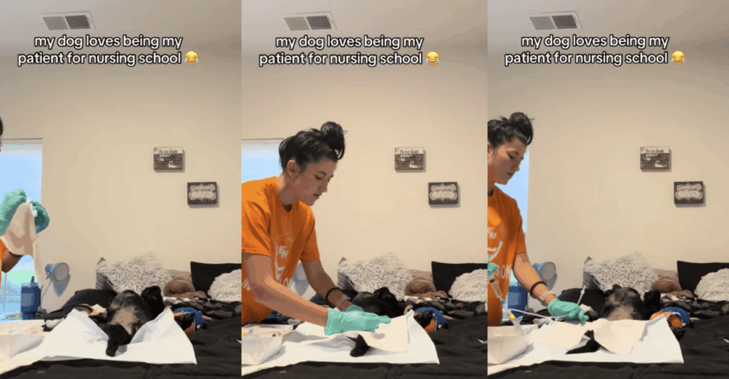 Dog Goes Viral for Playing “Patient” in Nursing Student’s Sim Lab